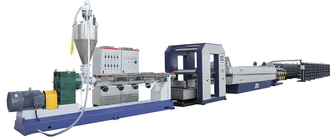 設備適用于生產聚丙烯(PP)新料,聚丙烯(PP)回料,以及生產新料與回料混合料。可用于草坪地毯的紗線,PP繩子等等。